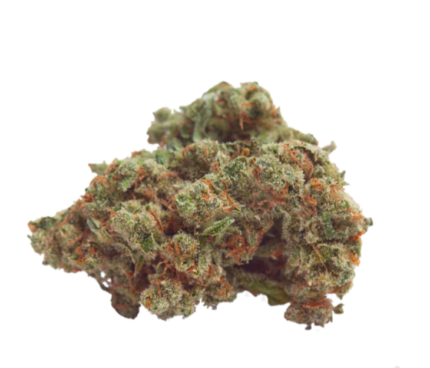 With a crystal-coated olive green nug woven with orange hairs and dripping with sweet smelling resin, this fruity strain tastes just as good as it looks.